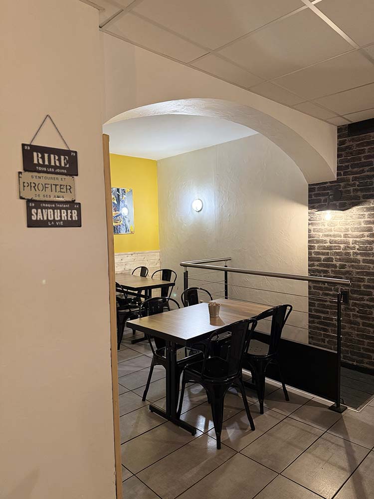 Notre restaurant vous accueille dans une salle chaleureuse et confortable, pensée pour vous offrir un véritable moment de détente. Que ce soit pour un repas sur place, une pause gourmande ou un moment entre amis, notre salle est l’endroit idéal pour profiter pleinement de votre expérience.